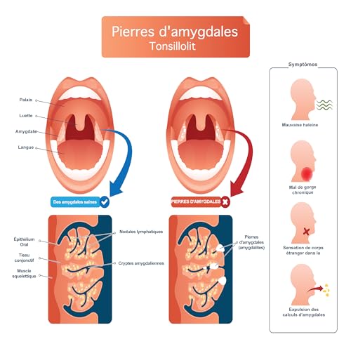 En utilisant régulièrement ce kit, vous pourrez réduire la formation de calculs amygdaliens et améliorer votre hygiène bucco-dentaire. Il peut également contribuer à réduire la mauvaise haleine associée aux calculs amygdaliens.
